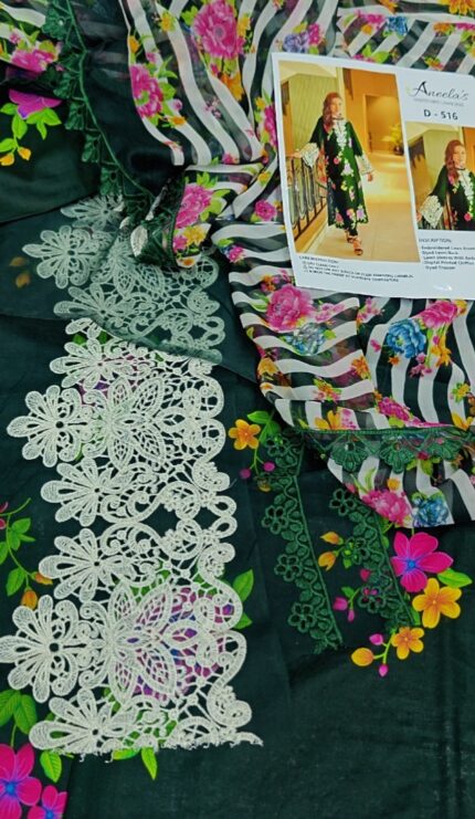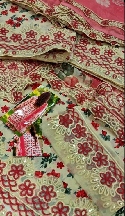 ❤️ Front Full Heavy EMB With Daman Organza Patch