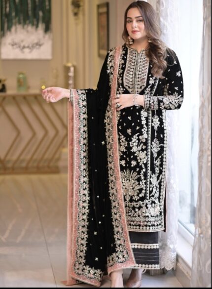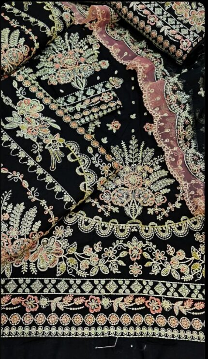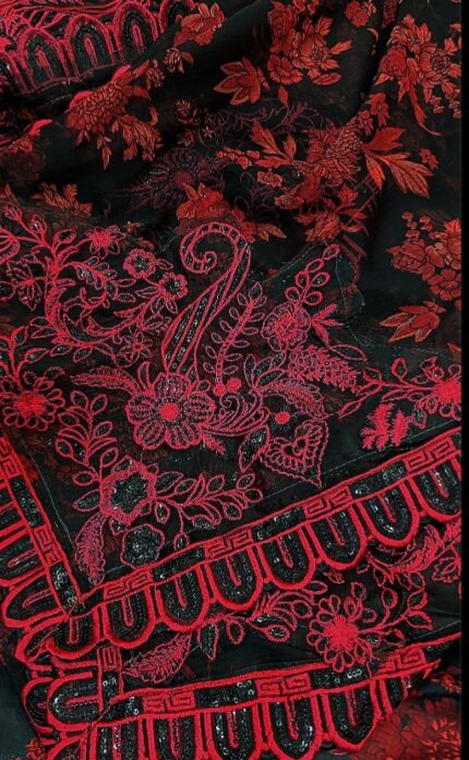 Aneela’s 3pcs Lawn Article In Black Colour