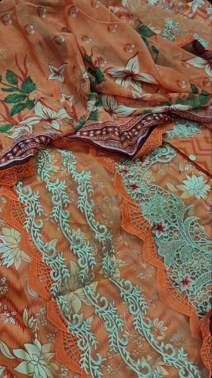 ❤️ Front Full Heavy EMB With Daman Organza Patch