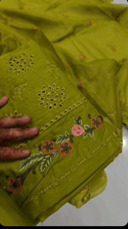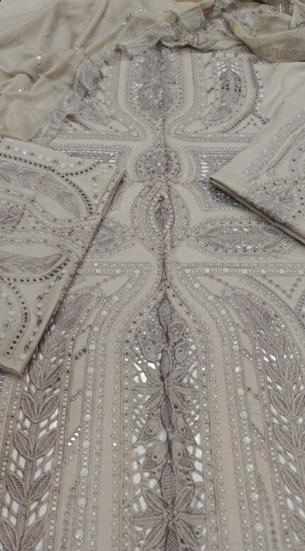 ❤️ Front fully adorned with heavy embroidery, enhanced with laser-cut & cutwork daman
