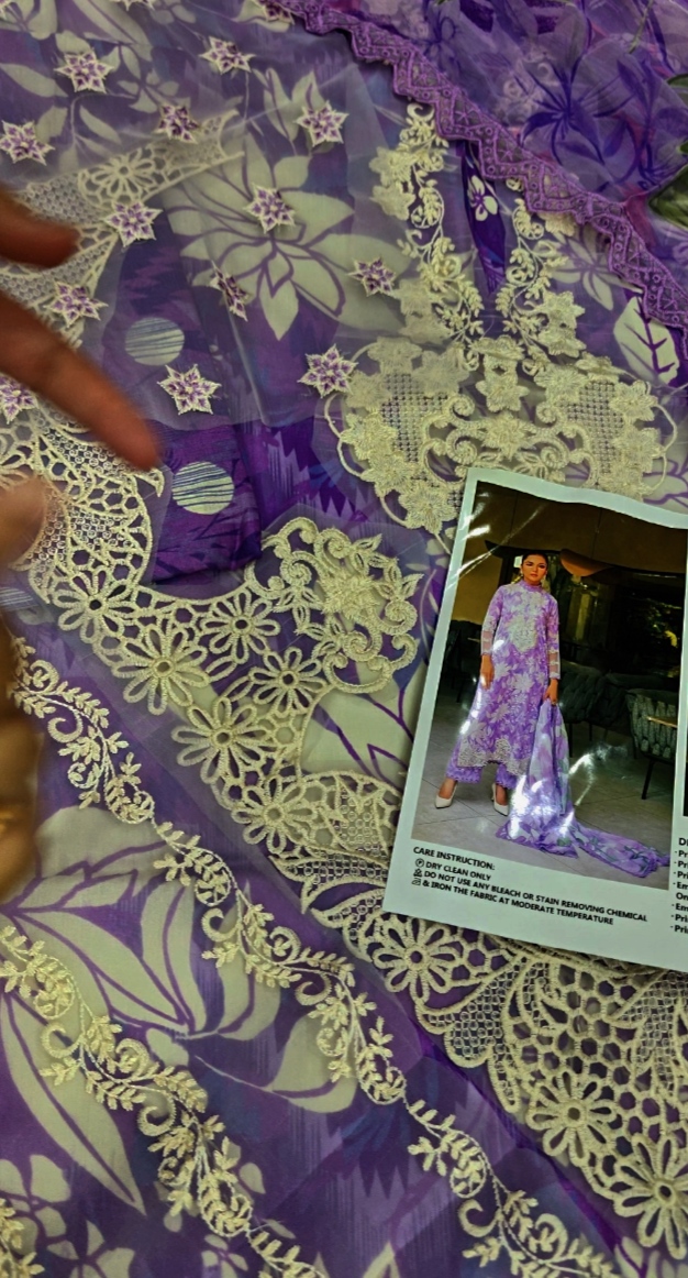 ❤️ Front fully adorned with heavy embroidery, enhanced with laser-cut & cutwork daman