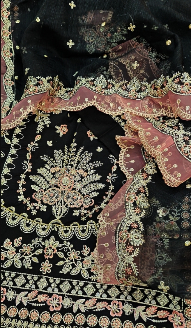 ✅Sleeves Chiffon EMB With Sequence Work