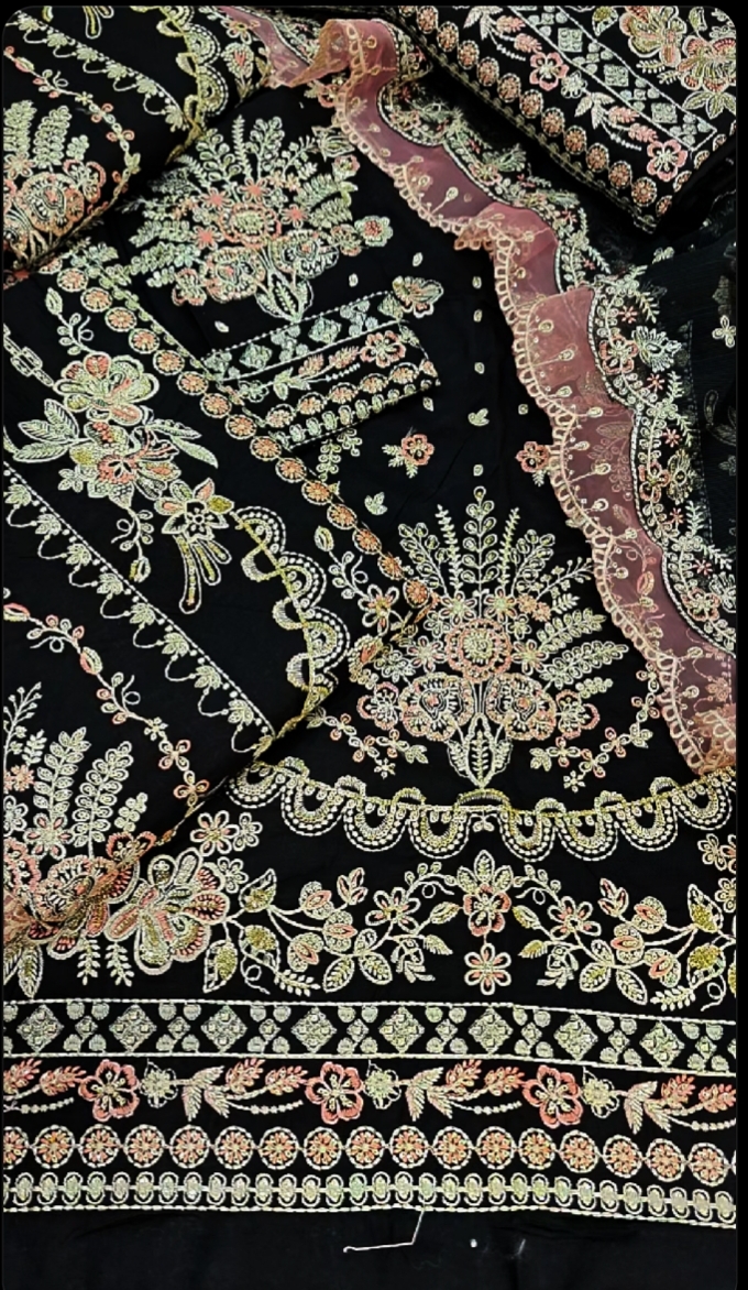 ❤️ Front Full Heavy EMB Sequence With Neck And Daman Patches