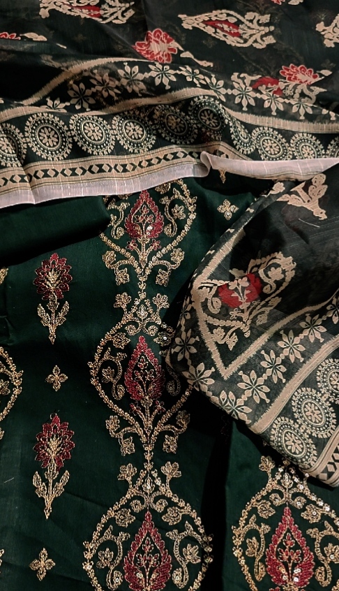 ❤️ Front Full Heavy EMB With Daman Organza Patch