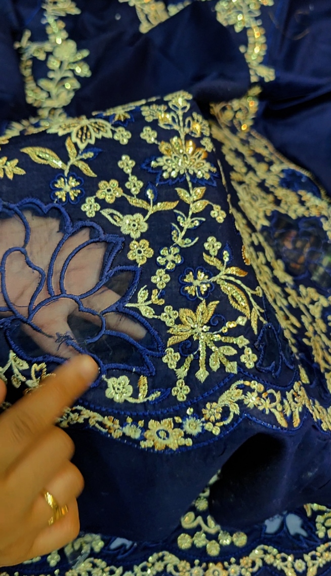 ✔️ Front heavily embroidered with sequins on organza fabric