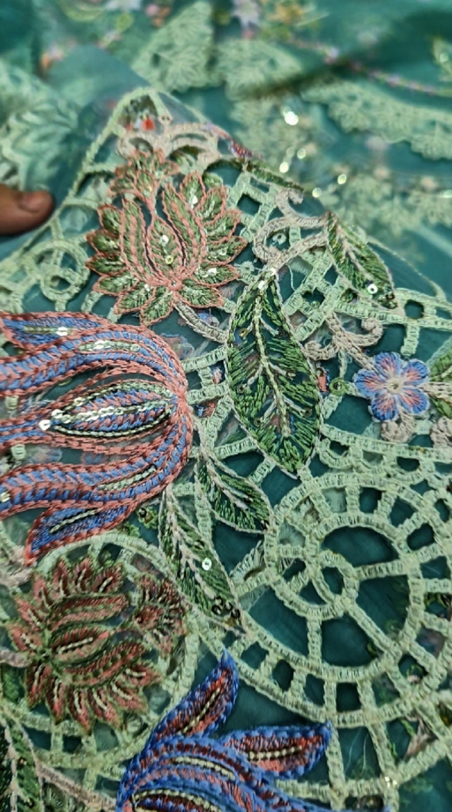 ✅Sleeves Emb With Organza Laser Cut Work Patch
