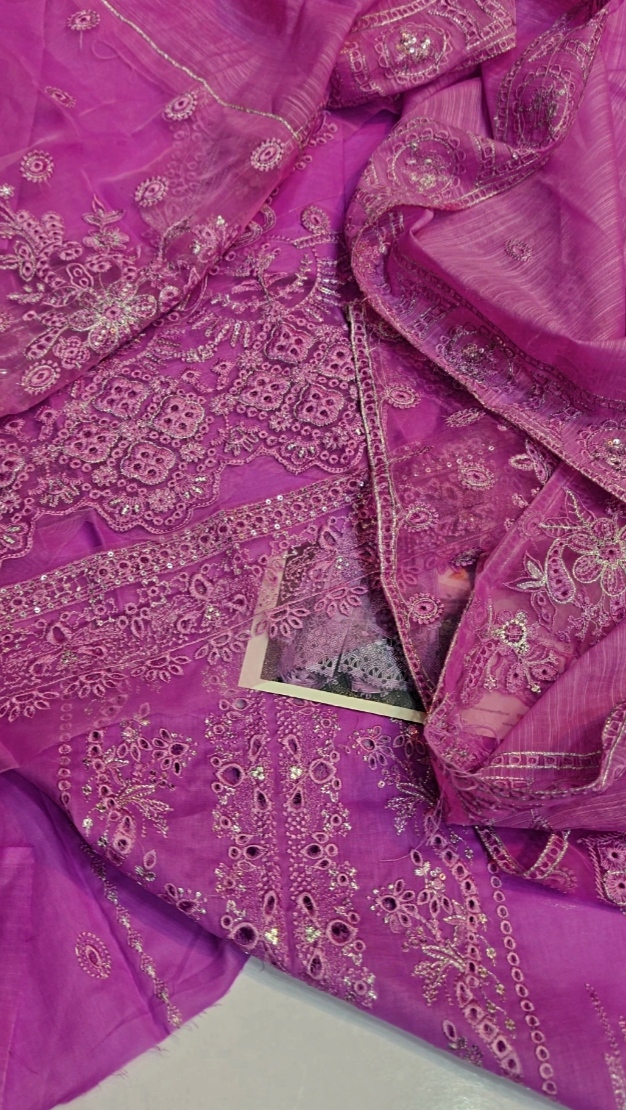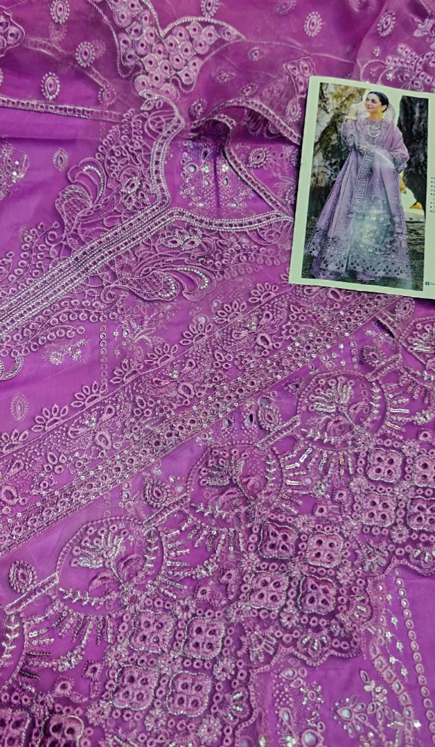 ❤️ Front Full Heavy EMB With Neck And Daman Organza Patches